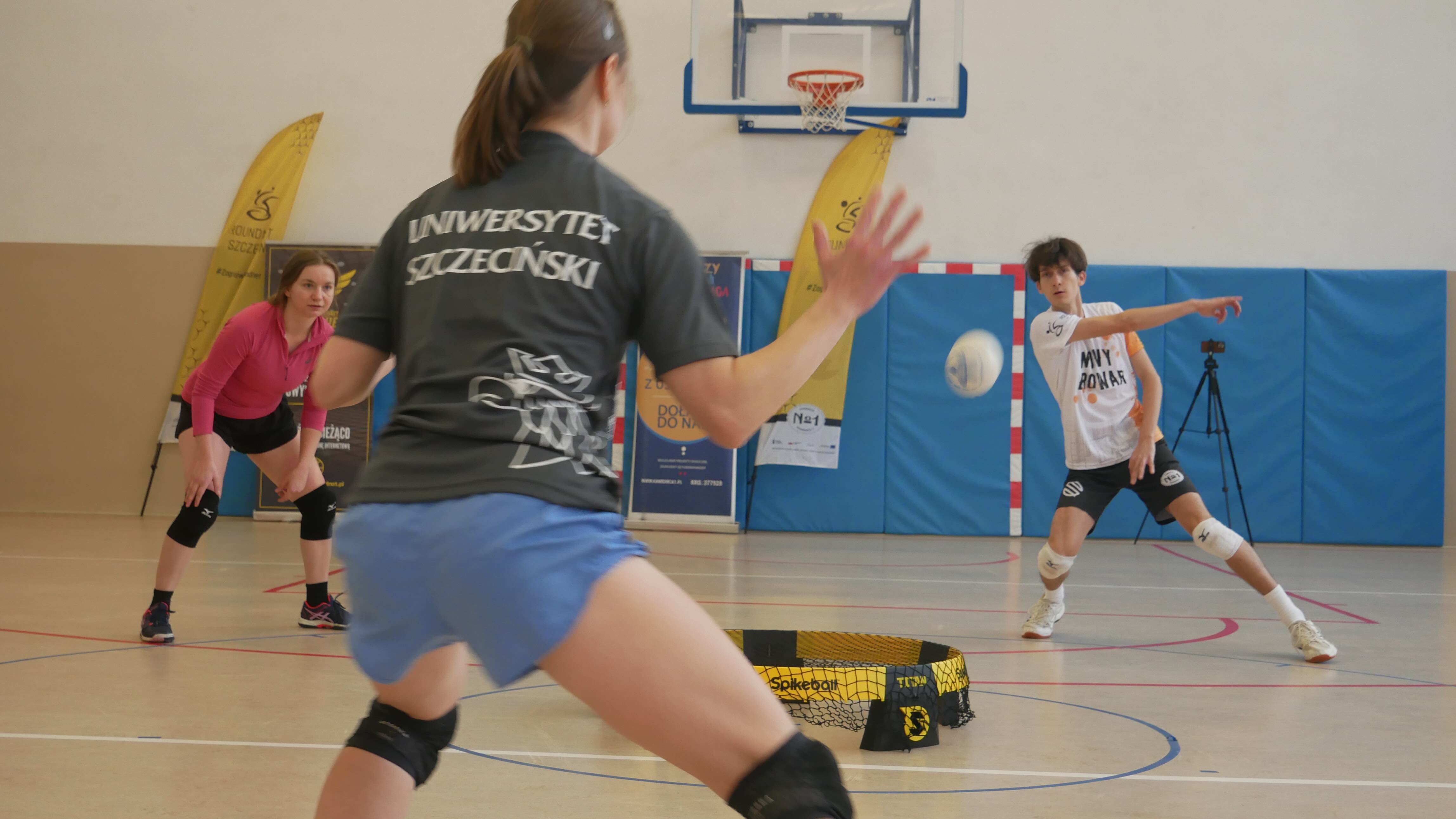 Studenci i studentki Uniwersytetu Szczecińskiego, którzy chcą potrenować przed kolejnymi turniejami ligi lub przygotować się do Akademickich Mistrzostw Województwa Zachodniopomorskiego w Roundnet 2026, mogą wziąć udział w cyklicznych, bezpłatnych zajęciach roundnet, które mieszczą się w sali gimnastycznej przy ul. Felczaka 3c w Szczecinie.